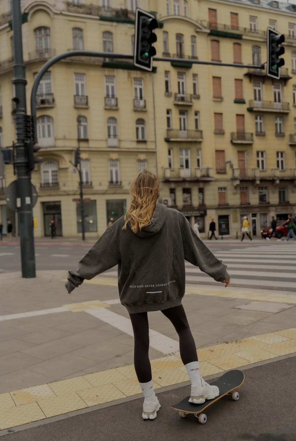 Duży kaptur, klasyczna kieszeń kangurkowa i precyzyjne wykończenia ze ściągaczami przy rękawach i u dołu nadają jej klasyczny kształt, a delikatne logo The Lines Club® na sercu i napis z tyłu utrzymują streetowy, autentyczny klimat marki.